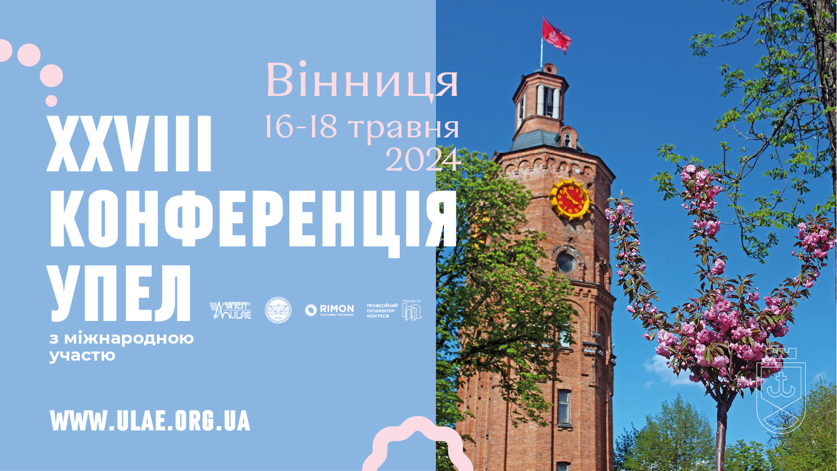 Запрошуємо Вас взяти участь у роботі XXVIII Наукова Конференція УПЕЛ з міжнародною участю, яка відбудеться в гібридному форматі в місті Вінниця 16-18 травня 2024 року.